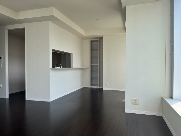 ■after■白基調の壁と床にダークブラウンのキッチンでスタイリッシュに。レンジフードはホワイトにすることで空間を邪魔せず開放感あるリビングキッチンになりました。システムキッチンはパナソニックの【ラクシーナ】使いやすくデザインも多彩なシステムキッチンです。♦トリプルワイドIH採用 before