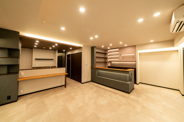 床は石目調のフロアタイルでホテルライクの内装にしあげました。